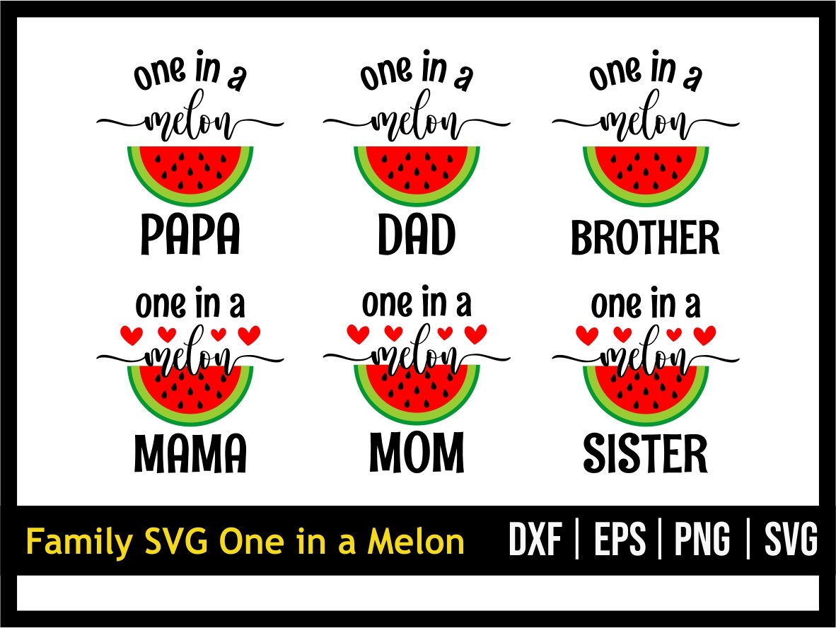 Family SVG One in a Melon SVG Cricut Silhouette DXF Transparent PNG Vector File.